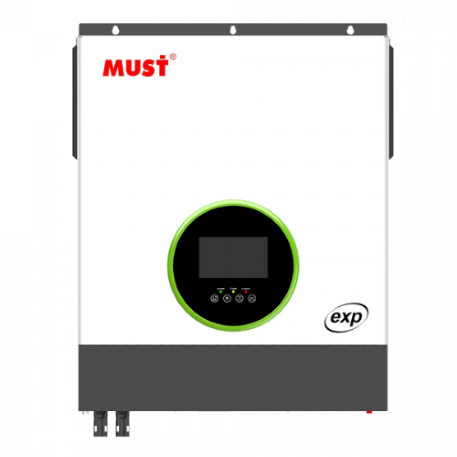The MUST 6.2KW Hybrid Inverter from the PV1900 EXP Series combines inverter, dual MPPT solar charge controllers, and battery charger in one compact unit for seamless energy management in residential and light commercial systems.